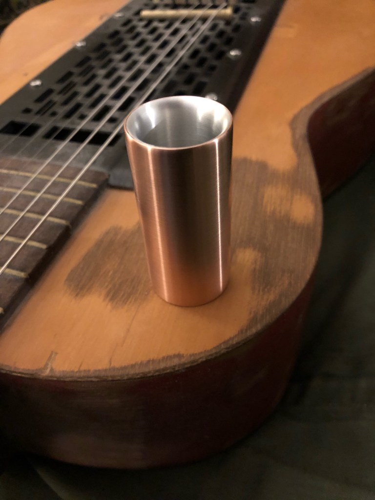 The Cu73 is a generous mix of comfort, sustain, and maneuverability; its copper finish will form a rich patina as it is polished by steel strings and then tarnished over time. Whether it slides down the fretboard of an electric or acoustic guitar, steel or nylon strings, the Cu73 will offer years of versatile sounds ranging from gritty, delta blues to warm country tones and subtle twang.