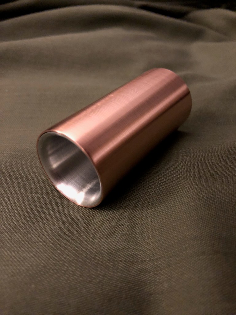 This lightweight, 60mm (2.36in.) guitar slide features a copper shell over aluminum sleeve. The copper shell offers a look and sound comparable to brass, while the aluminum sleeve adds mass, dampens harsh overtones, feels super smooth and looks really cool!