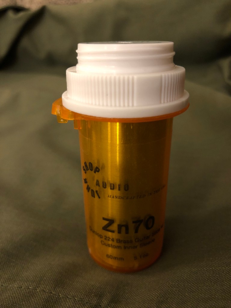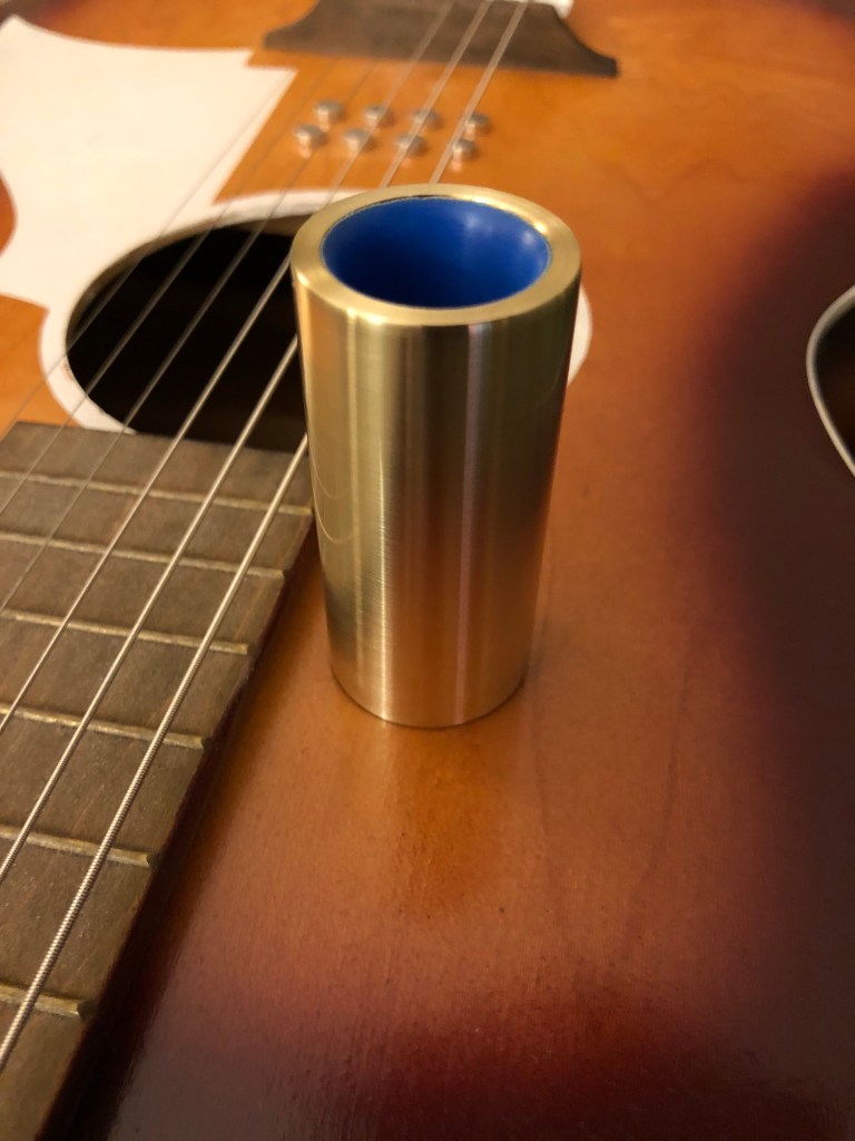This heavyweight, 60mm (2.36in.) guitar slide features the popular Dunlop 224 heavy wall brass slide over a blue polymer inside diameter reduction sleeve. Product reviews show that many 224 users like the weight and heavy wall of the slide, but that the large inside diameter creates a poor fit that makes it difficult to use.